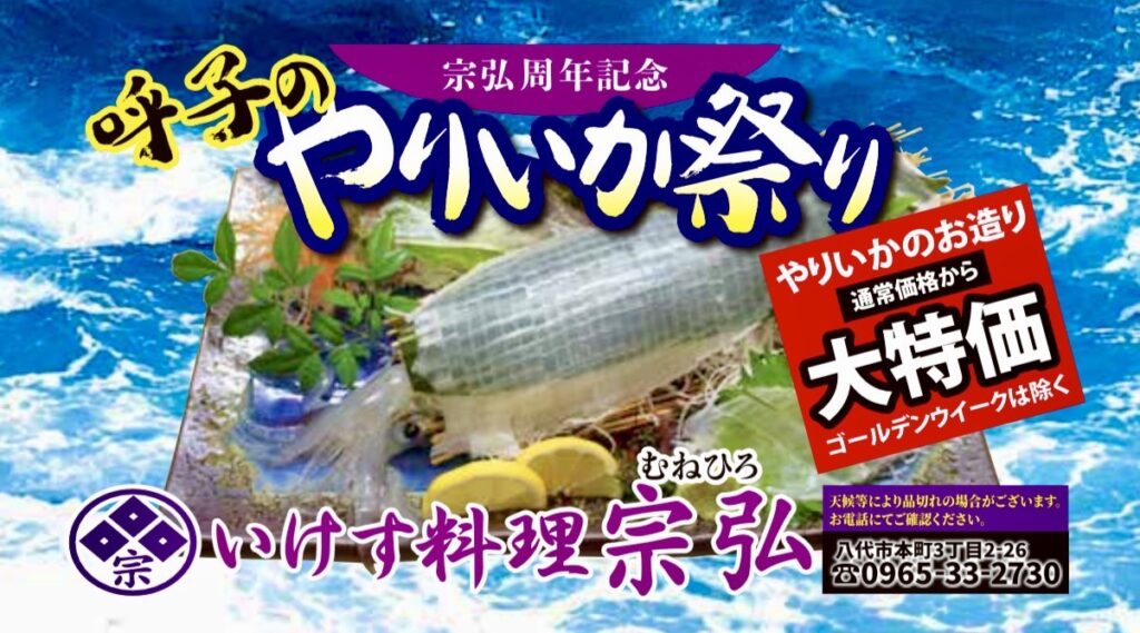 いけす料理宗弘では呼子のやりいか祭り開催中です!